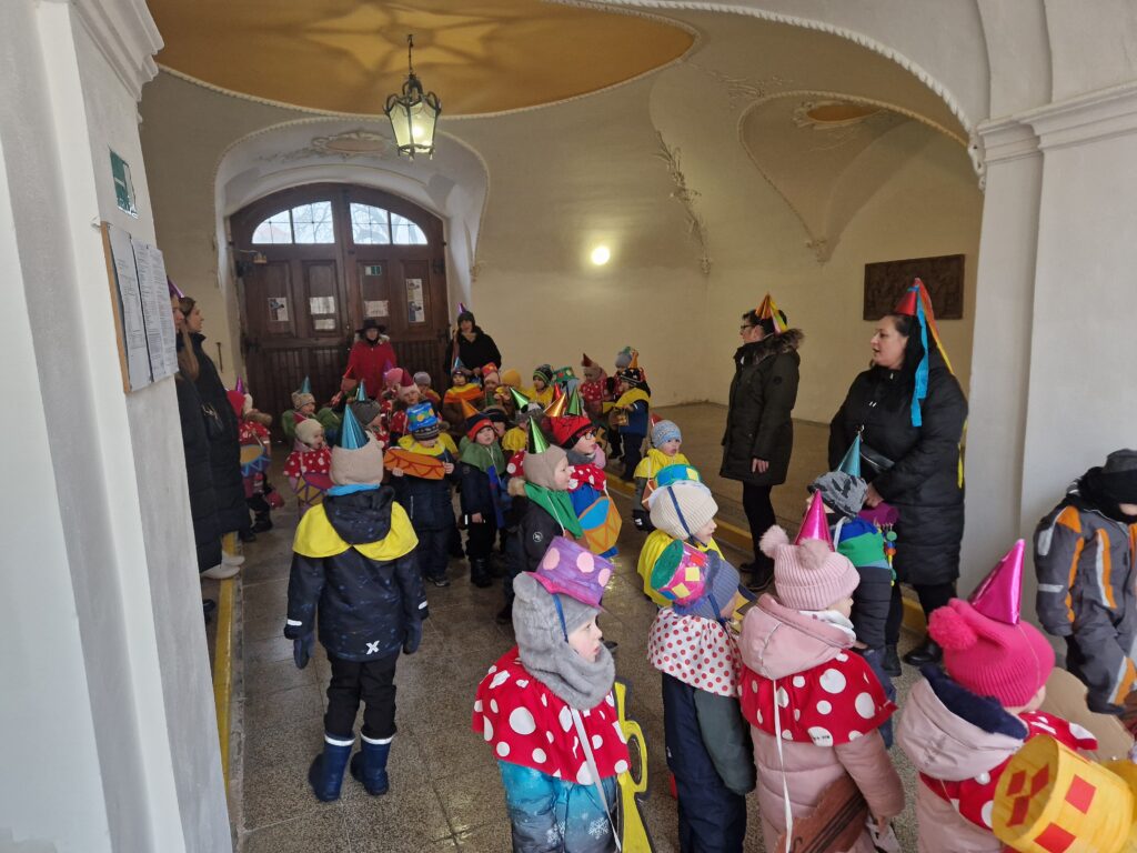 V pátek 6. února navštívil zámek veselý masopustní průvod dětí z mateřské školy. Malí účastníci v pestrých maskách rozzářili zámecké prostory zpěvem, písničkami a říkankami.